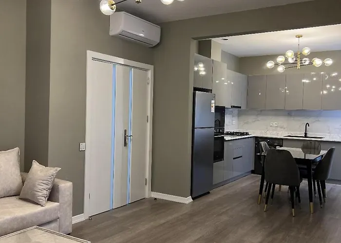 The spacious 122 m² apartment is 3.6 km from the Bibi-Heybat Mosque and about 20 km from Baku train station. This apartment is 10 minutes by car from the Sadarak Shopping Center.